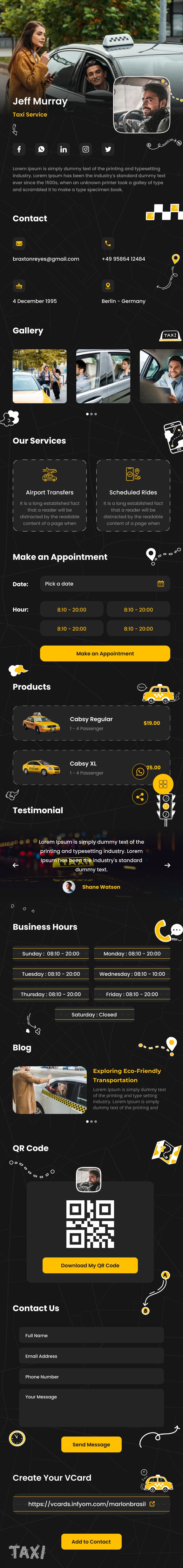 vCard pour les services de transport/taxi